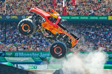 Monster Jam is a live motorsport event tour operated by Feld Entertainment. The series began in 1992, and is sanctioned under the umbrella of the United States Hot Rod Association. Events are primarily held in North America, with some additional events in other countries. Although individual event formats can vary greatly based on the “intermission” entertainment, the main attraction is always the racing, two-wheel skills competition, and freestyle competitions by monster trucks.